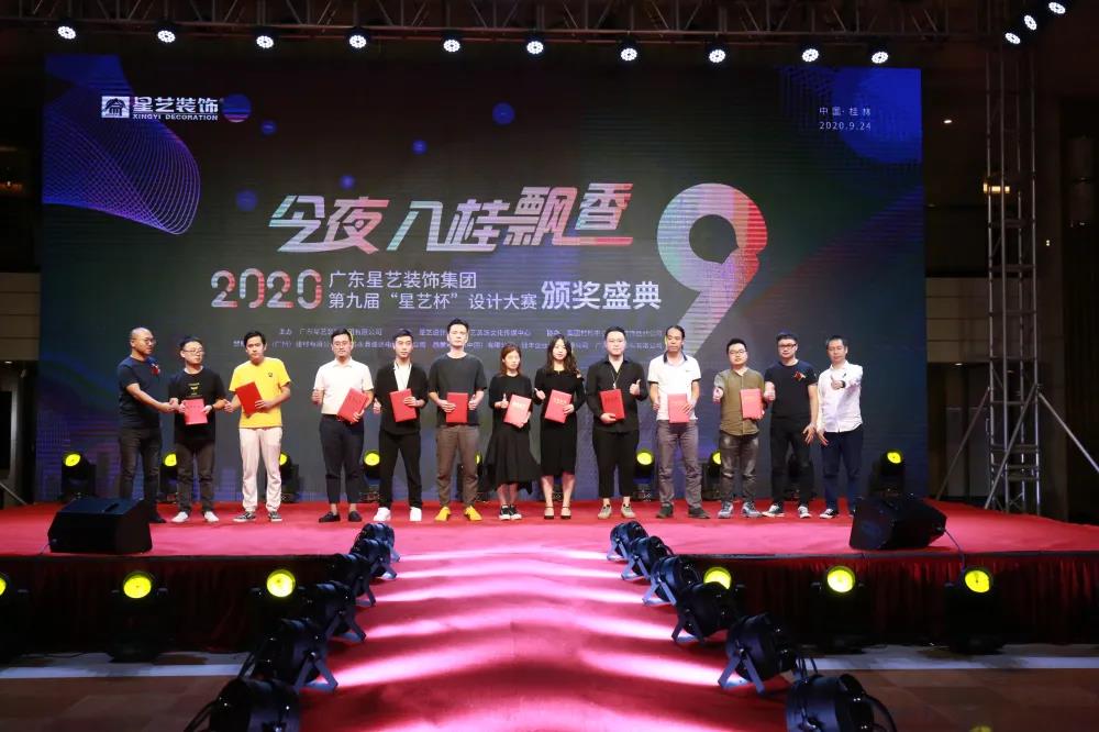9月24日晚,由廣東星藝裝飾集團有限公司主辦,星藝設(shè)計協(xié)會、星藝裝飾文化傳媒中心承辦,星藝集團材料中心、星藝裝飾桂林公司協(xié)辦,德高(廣州)建材有限公司、江蘇永鼎盛達電纜有限公司、西蒙電氣(中國)有限公司、日豐企業(yè)集團有限公司、廣州立邦涂料有限公司贊助的2020第九屆“星藝杯”設(shè)計大賽頒獎盛典在桂林盛大舉行。來自星藝裝飾全國各單位的近300名設(shè)計總監(jiān)和獲獎?wù)邊⒓宇C獎盛典。