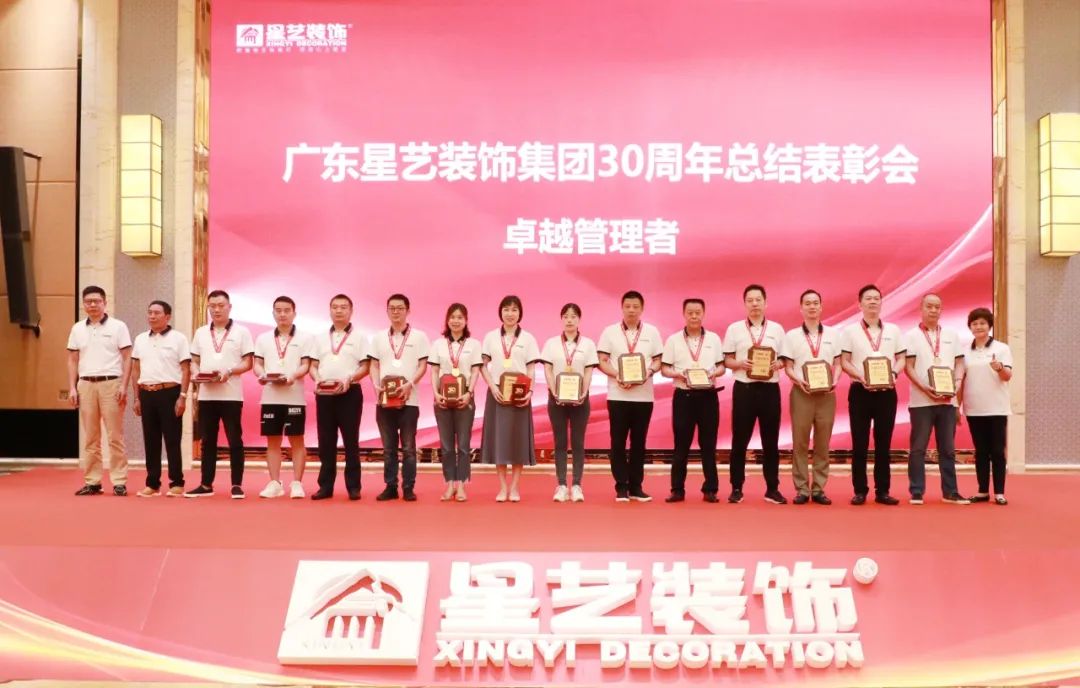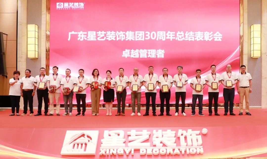 在表彰大會上,星藝裝飾成立30周年特設(shè)“功勛人物獎”“卓越管理者獎”“杰出人物獎”等九大獎項(xiàng),表彰為星藝裝飾作出突出貢獻(xiàn)的團(tuán)隊(duì)和個人。“杰出人物”表彰有一線工人、設(shè)計師、營銷專員、財務(wù)人員、部門經(jīng)理和管理者代表。