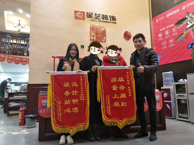 2018年12月15日,兩位溫莎北郡業(yè)主送來錦旗兩幅,稱贊設計師羅靖華,李偉杰,監(jiān)理聶青服務貼心 設計精湛 質(zhì)量上乘 服務周到。