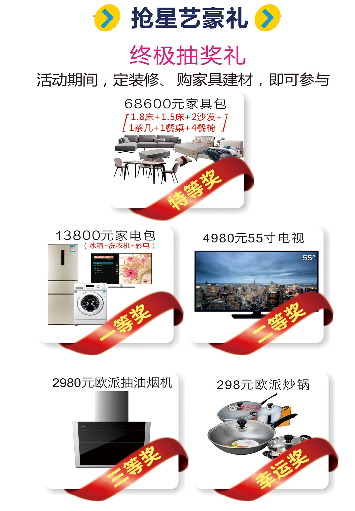 星藝人秉承做良心工程,本著對客戶負(fù)責(zé),對自己負(fù)責(zé)的態(tài)度,工程決不外包,承諾工程質(zhì)量有問題,砸掉免費(fèi)重做!“好飾連城”好飾好屋、好事連連、幸福連連,好禮大放送,