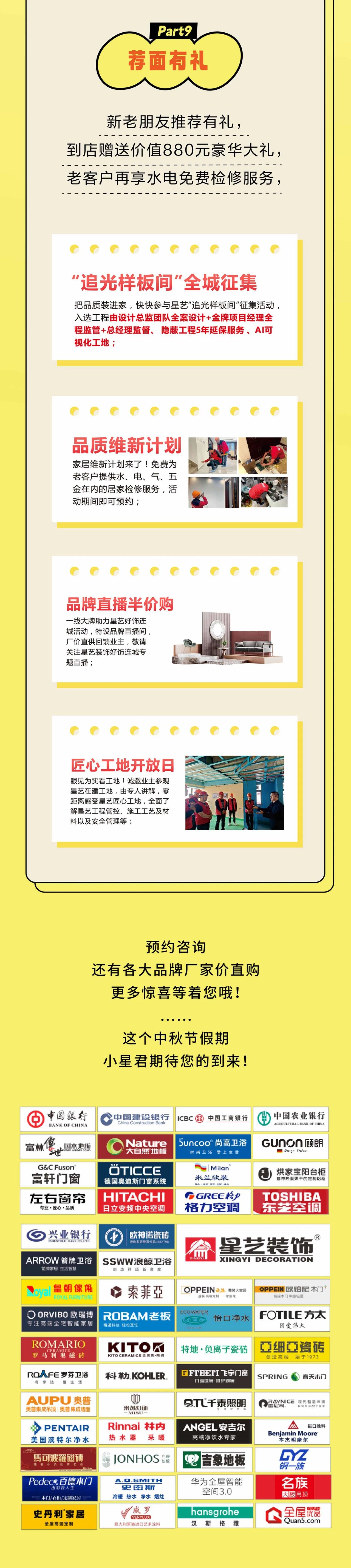 2014年星藝裝飾“好飾連城”全國(guó)大聯(lián)動(dòng)首屆成功舉辦,一年一屆好飾不斷上演。星藝集團(tuán)總部+歐派總部+一線集采品牌助陣聯(lián)合讓利。星藝裝飾33年品牌,入駐綠城22年,不負(fù)每一份信任。好飾連城11,11重禮遇、億元補(bǔ)貼、鉅惠全國(guó)。南寧站具體優(yōu)惠如下: