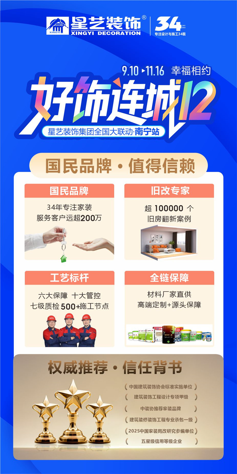 - 【行業(yè)動態(tài)】行業(yè)認可!星藝廣西再次獲“2025年裝修企業(yè)信用AAA級企業(yè)”