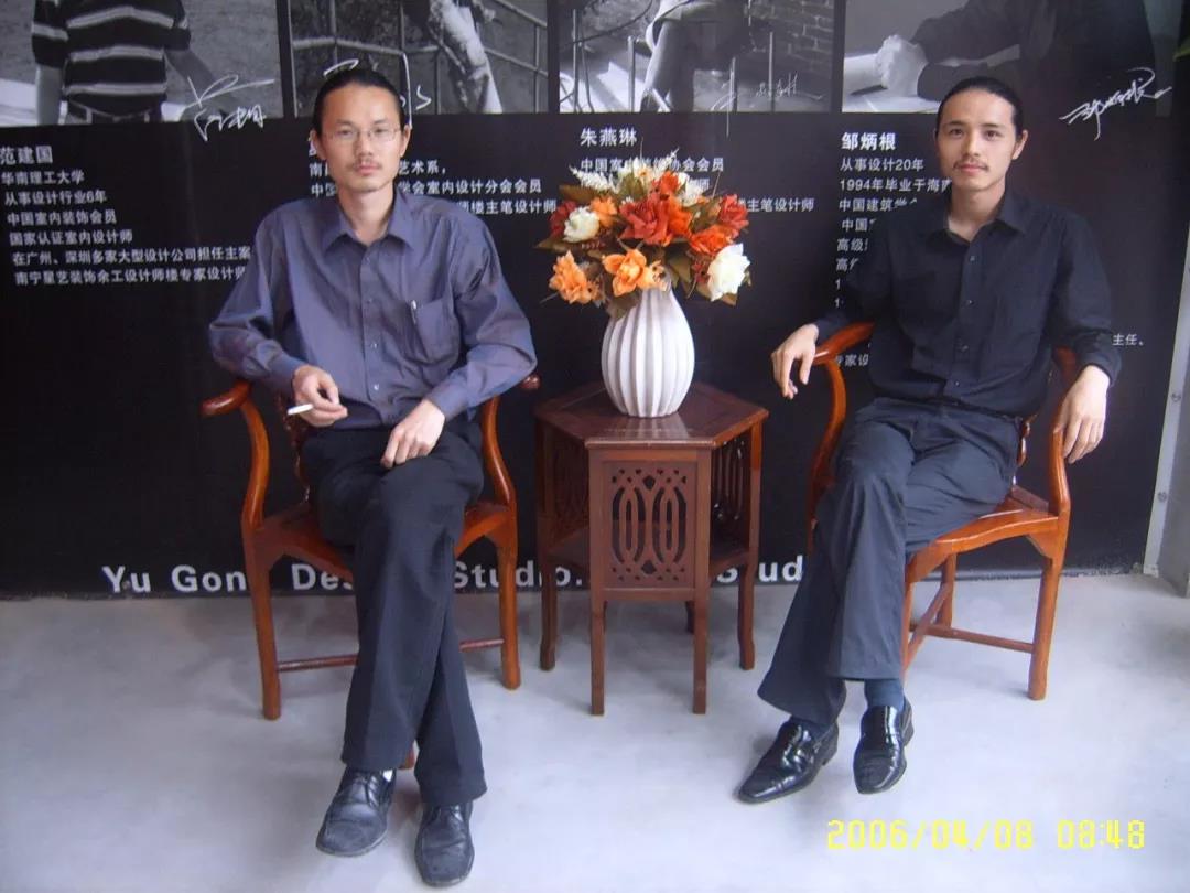 ▲2006年余工樓創(chuàng)建,設(shè)計(jì)總監(jiān)王時(shí)雨(右)與設(shè)計(jì)總監(jiān)李明(左)合影。