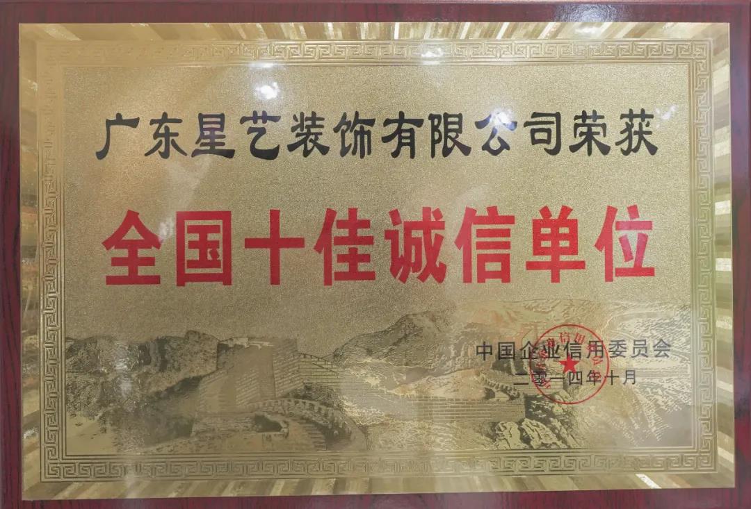星藝裝飾自創(chuàng)建30年、入邕18年以來,始終以誠信經(jīng)營、優(yōu)質(zhì)高效、服務(wù)大眾為己任。 1998年星藝裝飾在國內(nèi)首先發(fā)布了“讓工地開口說話”的裝修質(zhì)量宣言,2000年通過了ISO9001國際質(zhì)量體系認(rèn)證,2005年在業(yè)內(nèi)首先發(fā)布《全國質(zhì)量聯(lián)保宣言》,堅守標(biāo)準(zhǔn)和承諾,自覺接受社會監(jiān)督。先后獲得“中國講誠信、守合同、重質(zhì)量典范企業(yè)”、“AAAA級誠信達(dá)標(biāo)企業(yè)”、“全國住宅裝飾裝修行業(yè)百強(qiáng)企業(yè)”等多項信譽(yù)榮譽(yù)稱號。