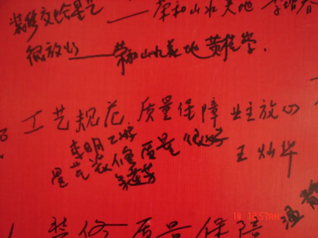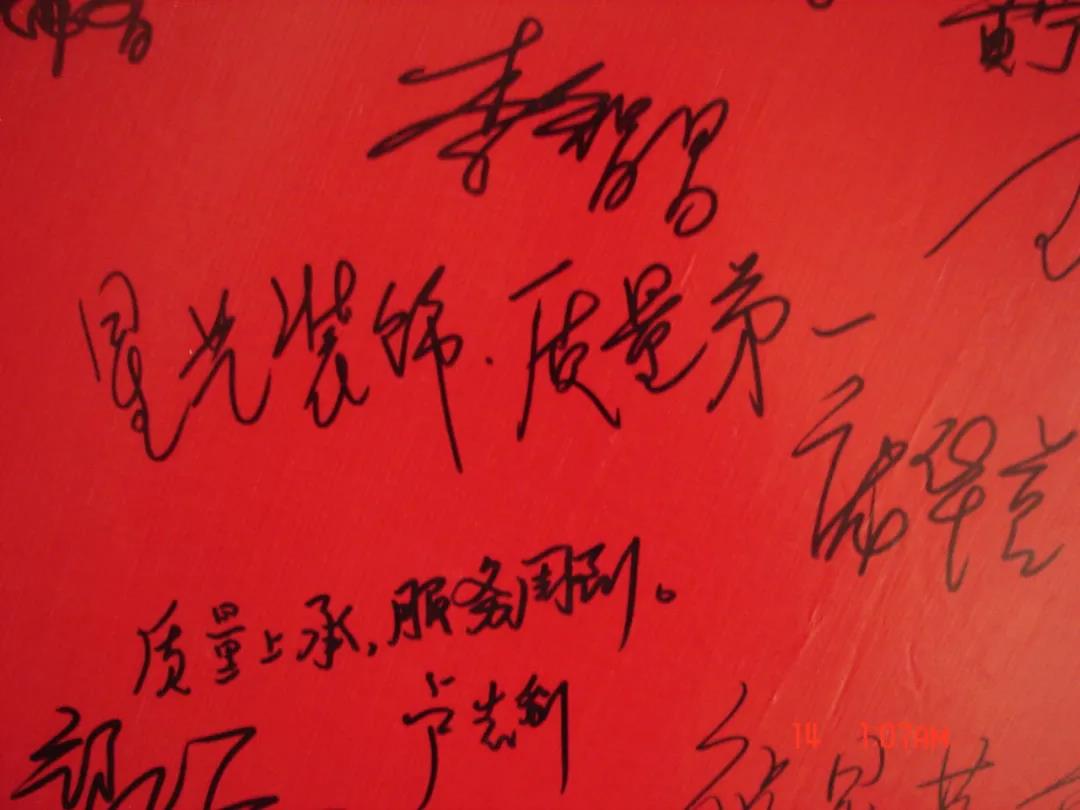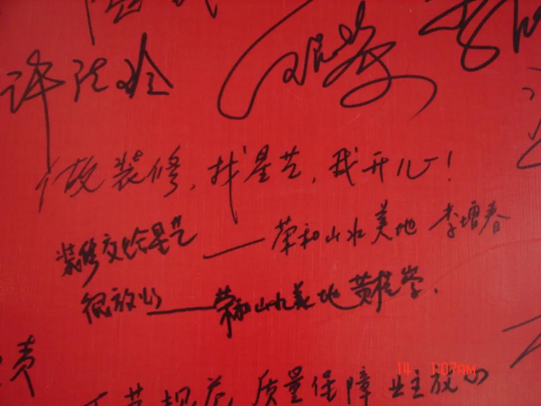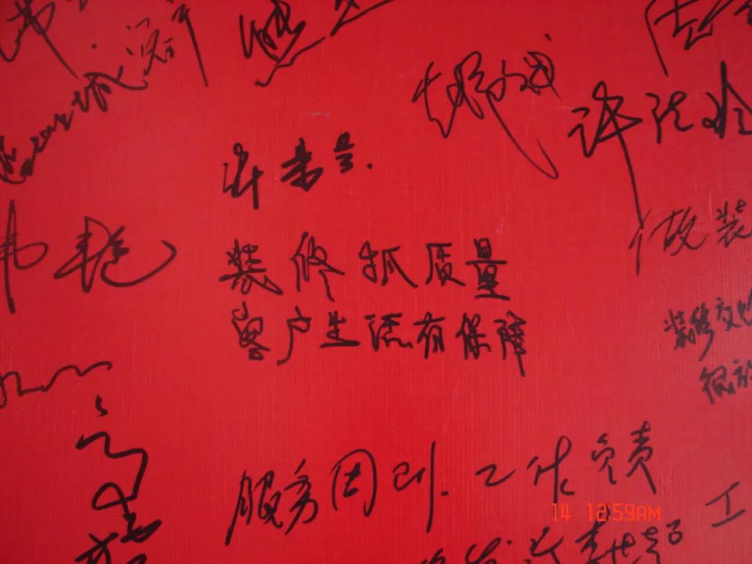 在星藝裝飾南寧公司第三屆“家裝文化節(jié)”上,鮮紅背景的留言板上客戶寫了很多字,有褒揚(yáng)的,有建議的,有祝愿的……十多年的今天,再一次看到這些留言,越看越感動(dòng),越看越暖心……