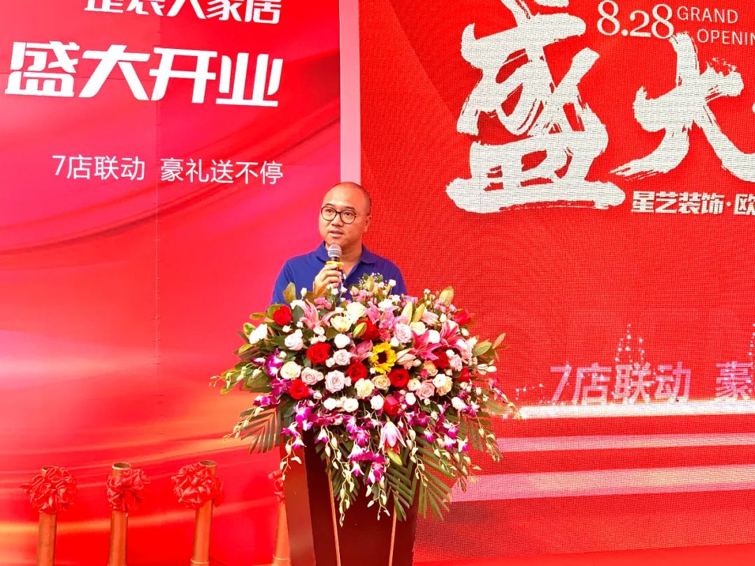 隨后,歐派集團(tuán)整裝大家居經(jīng)銷部總監(jiān)黃亮亮黃總上臺(tái)致辭,黃總表示很榮幸今天能被邀請參加如此盛大的開業(yè)儀式,2018年,歐派率先開創(chuàng)“整裝賦能”的整裝大家居模式,是行業(yè)里面第一家提出大家居概念的品牌,攜手當(dāng)?shù)貙?shí)力最強(qiáng)的星藝裝飾相互賦能,為用戶提供一站式從設(shè)計(jì)到落地的整裝最優(yōu)模式,真正的為客戶實(shí)現(xiàn)所見即所得的家裝服務(wù),也是未來最具性價(jià)比的趨勢, 因此暨此開業(yè)盛事,預(yù)祝星藝裝飾 · 歐派整裝大家居生意興隆。