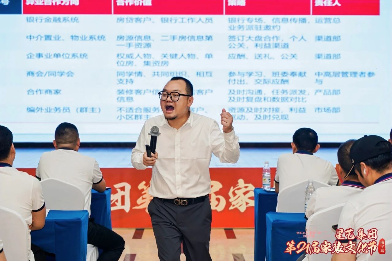 隨著時間的推移,啟動會進(jìn)入正式啟動環(huán)節(jié),集團副總裁凌峰就此次活動方案進(jìn)行了詳細(xì)的講解,闡述2025年文化節(jié)活動新的調(diào)整,同時指出活動亮點以及規(guī)則,并表示在本屆裝飾文化節(jié)中,除了“免單21萬”驚喜大獎,還特別為業(yè)主提供了更多、更大的驚喜福利,并預(yù)祝現(xiàn)場星藝家人在此次活動取得佳績。