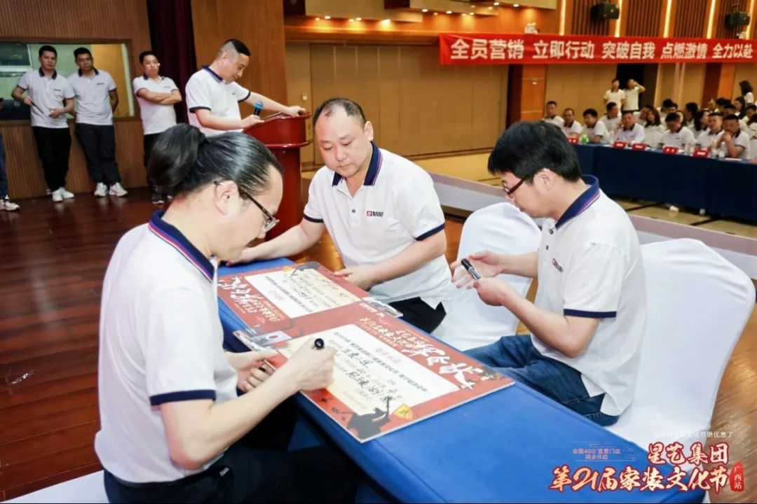 伴隨著滿滿的儀式感中,廣西區(qū)各個代表、各部門逐一上臺簽訂目標(biāo)責(zé)任狀。團隊英姿喚發(fā),眾志成城,以亢奮的激情展示團隊精神風(fēng)貌;員工斗志昂揚,信心滿滿,誓師堅決完成任務(wù),一定超越目標(biāo)。五十余家建材聯(lián)盟商家也上臺進(jìn)行質(zhì)量承諾宣誓,在活動中必將明碼標(biāo)價,保證產(chǎn)品質(zhì)量,讓消費者得到最實惠的品質(zhì)產(chǎn)品。