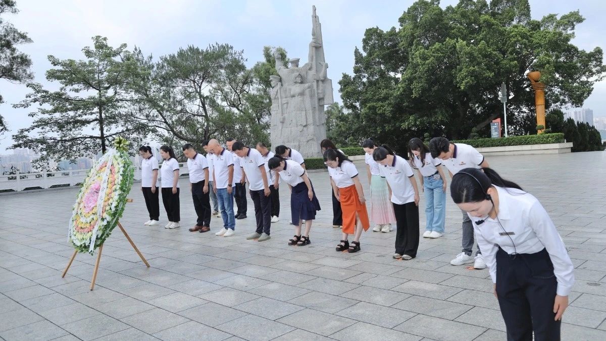 在紀念碑前,中共星藝集團廣西黨支部全體黨員們?nèi)w莊嚴肅立,向革命先烈默哀致敬,重溫入黨誓詞,并認真聆聽革命先烈的事跡,表達對革命先烈的深切緬懷和崇高敬意。